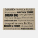 Personalize this fun family rules doormat. Just add your last name and select color of your choice your visitors will love it when they come and visit. Makes the perfect anniversary or housewarming gift too. Just another way to make your party special all part of the Home and Hostess collection.