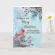 Merry Christmas for niece and her family card with rustic watercolor greenery and cardinal and vintage watercolor snow pattern.