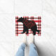 Rustic Northwoods Black Bear Silhouette On Plaid Doormat