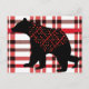 Rustic Northwoods Black Bear Silhouette On Plaid Postcard