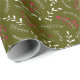Farmhouse country olive moss green, red and white foliage, wreath, leaves, rustic greenery pattern cute holiday gift wrapping paper.