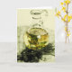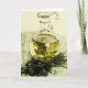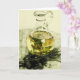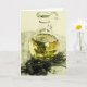 Easy to customize rustic olive oil greeting card. A pitcher with olive oil with basil leaves and black olives and chives, styles as watercolor painting.