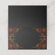 Elegant dark rustic orange floral on black wedding invitation is lovely with orange roses and greenery on a dark black background for a gothic wedding look. The flowers adorn the corners for an elegant, modern and sophisticated look. Perfect for a fall, Halloween or gothic style wedding.
