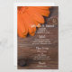 The casual yet classy Rustic Orange Daisy Country Wedding Menu can be personalized with the details of the meal that you will serve at your bridal shower luncheon, engagement barn party or marriage reception dinner when you add the salad or first course, entree or second course and dessert or third course. This charming custom farm style or ranch wedding menu features a quaint floral photograph of an orange gerber daisy flower blossom with weathered brown barnwood.