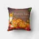 Personalized with the family name. Rustic Happy Fall Rustic Orange Fox Pumpkin Fall Autumn Leaves Throw Pillow