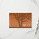 A tree of life themed RSVP response card. Featuring a orange tree silhouette.