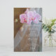 Customize the casual yet classy Rustic Orchid Elegance Barn Wedding Menu with the details of the meal that you will serve at your ranch theme bridal shower luncheon, marriage reception dinner or post wedding brunch by adding the salad or first course, entree or second course and dessert or third course. This charming custom nuptial menu features a quaint floral photograph of pink phalaenopsis orchid flower blossoms on the stem with brown barn wood and a white bridal veil.