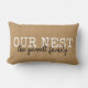 Modern farmhouse throw pillow personalized with your family name. Please note the subtle burlap background texture is part of the printed design and the product is not made of real burlap fabric. Click the Customize It button to add your own text and select from all of our pillow styles to create your own unique one of a kind design!