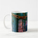 Rustic painted wood door keyhole blue pink coffee mug