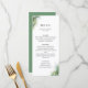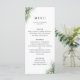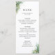 Rustic watercolor palm leaf arrangements, menu card. Template provides space for names, date and three menu title headings with descriptions. Backing color shown in coordinating sage green, can be customized.