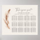 Rustic pampas grass botanical wedding seating plan poster