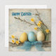 Rustic Pastel blue and yellow Easter eggs retro Holiday Card
