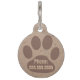 Personalized dog tag with paw print and textured effect background for a rustic look. Image repeated on reverse to custom with your contact number.