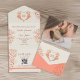Rustic Peach Floral Heart Monogram Wedding All In One Invitation