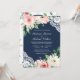 Rustic Peach Floral Lace Navy Blue QR Code Wedding Invitation