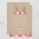 Rustic Peony and Deer Antler Wedding Invitations