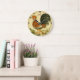Rustic Personalized Colorful Rooster chicken Round Large Clock