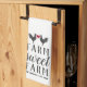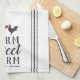 Celebrate life on the farm with this cute personalized kitchen towel featuring the phrase "farm sweet farm" in dark grey lettering accented with a pair of chickens and a red heart. Customize with your family name and/or year established beneath.
