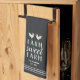 Celebrate life on the farm with this cute personalized kitchen towel featuring the phrase "farm sweet farm" in ivory lettering accented with a pair of chickens and a red heart. Customize with your family name and/or year established beneath.