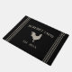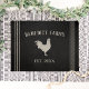 Welcome guests to your abode with this charming rustic farmhouse style doormat. Personalized design features your family name or farm name in neutral tan lettering, along with your year established and a rooster illustration. Rope stripe detailing on a rich black background completes the design.