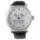 This rustic, unique, one-of-a-kind personalized design features a rustic gray faux-wood background with black personalized his and her names in a script font overlay design and the last name and year established in a bold script with a printed wood effect background. Personalize this watch by adding your personal information. Makes a great wedding, anniversary, or housewarming gift. Click "personalize this template" to change the names, fonts, and colors to create a unique one of a kind design. If you need any help with customization please email me at ybnormalone @gmail.com. Thanks for stopping by www.zazzle.com/Personal_Creations. ©Karen Hall for Personal_Creations at Zazzle.