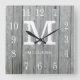 Rustic Personalized Gray Wood Farmhouse Monogram Square Wall Clock