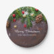 Rustic Christmas paper plates for your holiday party celebrations. Personalize with your monogram or family name for a unique look.