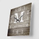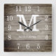 Rustic Personalized Wood Farmhouse Monogram Name Square Wall Clock