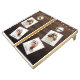 Rustic String Lights Printed Wood Background with pet photos you can easily replace by clicking the "Personalize" button. A perfect family gift.
