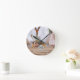 Rustic Photo Collage Monogram NEWLYWEDS WEDDING Round Clock