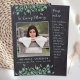 Rustic Chalkboard Eucalyptus Sympathy Funeral Prayer Cards. This rustic yet elegant memorial prayer card features a eucalyptus greenery on chalkboard slate design . Front "In Loving Memory" Personalize this memorial funeral prayer card with your loved ones photo, name & dates, and sentiment. Back ~ 'May You Always Walk In Sunshine' Poem, which can be personalized, please reach out if you would like a design with a specific poem other than. This memorial prayer card will be a treasured keepsake, for funeral services, and celebration of life. COPYRIGHT © 2020 Judy Burrows, Black Dog Art - All Rights Reserved. Rustic Photo Eucalyptus Memorial Prayer Card