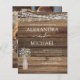 Photo Rustic Farmhouse String Lights and Jar of Baby's Breath Wedding Invitations on Wood background - includes beautiful and elegant script typography with modern Country Farm House Sparkle for the special Wedding day celebration.