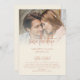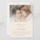 Rustic Photo Overlay Script QR Code Cream Wedding. Printable or printed. Bohemian vibes with earthy colors terracotta lettering on cream with your favorite photo at the top. Change text as required and replace the sample picture with your own. With a QR code to your wedding website on the back so your guests can easily scan it and see more details. Your QR code will be automatically generated to update the sample code in the design, when you simply change the sample URL in the template with your own wedding website URL. Or you can delete the sample QR code and text on the back if you wish.