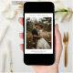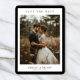 This Rustic Photo Wedding Save the Date features a romantic forest setting with the couple embracing, highlighted by a soft, natural backdrop. The design uses classic typography over the image, presenting a timeless and elegant appeal.
