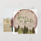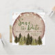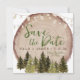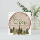 This beautiful two-sided rustic forest woodland save the date invitation will impress your guests. The gorgeous watercolor illustration design features a rustic wood slice layered with outdoor canopy lights and watercolor forest trees in various elegant shades of hunter green, dark chocolate brown, and shades of tans. Don't forget to add your engagement photo to the back side. Click the Edit Using Design Tool to make additional changes to this invitation.
