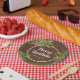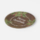Add this rustic themed Christmas plate to you party this year. The background is a dark wood accented with handwritten calligraphy and watercolor pine and berries. Personalize with your name.