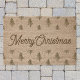 Custom-designed coir fiber doormat for the holiday season featuring "Merry Christmas" or personalized text on rustic pine forest pattern.