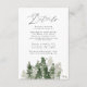 Elegant, rustic wedding details enclosure card featuring a forest of dark hunter green & sage green watercolor pine trees. Personalize the wedding guest information cards by adding key details such as hotel accommodations, welcome reception information, your website, etc. Designed to coordinate with our Rustic Pine Forest wedding collection.