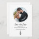 Rustic pine tree casual wedding save the date announcement, with a simple typography design. With customizable lettering, you add your own information. You also add your own photo to add personalization. The back gives you the option to add your wedding website and a QR code for your guests to scan. Great for planning your special day with a boho style.