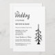 Rustic pine tree wedding invitation, with a simple typography design on a white background. With customizable lettering, you add your own information. Great for planning your special day with a boho casual style.