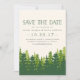 Our rustic pine tree wedding save the date cards have a cool Northwestern vibe, with a lush forest of pine trees in rich shades of green, ranging from light pear and grass green to deep hunter. Perfect for weddings in forest, woodland or mountain settings, these save the dates feature a warm ivory background with your wedding details in hunter green and medium gray typography. Custom text templates provide space for your names, wedding date, location and wedding website. Add an engagement photo to the back of the card if desired.