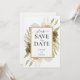 Elegant but rustic, pine boughs and pinecones adorn this wedding SAVE THE DATE.