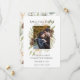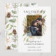 This editable Save the Date Card features the Rustic Botanical Pine cone frame design with the photo of the couple getting married. Image shown is for display purpose.