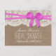 Rustic Pink Bow Bridal Shower Recipe Cards