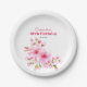 Rustic Pink Cherry Blossom Sakura Floral Birthday Paper Plates
