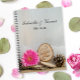 The charming Rustic Pink Daisy Woodland Wedding Spiral Notebook makes a great casual yet classy guest book, advice book or organizer for your wedding planning tasks. This informal personalized woods or forest inspo wedding note book features a nature style photograph of a pink gerber daisy flower blossom, natural wood slices with the word LOVE on it, brown pine cone and white bridal veil with a burlap and white satin background.