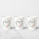 Soft blush pink roses and bright pink buds create a beautifully rustic floral wreath. White hydrangeas at to the floral bloom. The birthday woman's name is written in a large script font. 70th Birthday and the thank you sentiment follow. This paper cup is part of the 70th Birthday Pink Rose Floral collection. It contains many DIY templates that let you quickly create invitations and party supplies.