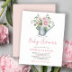 Rustic watering can with beautiful blush pink roses bouquet making an elegant modern affordable girl baby shower invitation.+++++++ The card has a white background on the front side and a blush (changeable color) background on the reverse. It features a fancy calligraphy script and modern contemporary typography.+++++ Ideal for an outdoor, garden spring or summer elegant country chic baby shower party. ++++++++++ PLEASE READ THIS BEFORE PURCHASING! This is a budget affordable wedding card printed on a paper sheet (each sheet has one card). ++++ For the best rapport price-quality, our advice is to choose the Semi-Gloss paper type (it is thick enough to be used for stationery) ++++ If you need envelopes, choose the ENVELOPE OPTION. +++ Double-check all the information and spelling of your text because you will receive exactly what you see - no one else will check anything before printing. ++++ This card is designed for size 4.5" x 5.6". In the case you choose another size of the card and text goes outside page, everything needs to be fixed before adding the product to cart. Please ask Live Design Service for help.