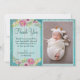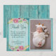 Rustic Pink Floral Blue Wood Baby Shower Thank You Card