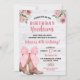 Rustic Pink Floral Conquette Cowgirl Boot Birthday Invitation
